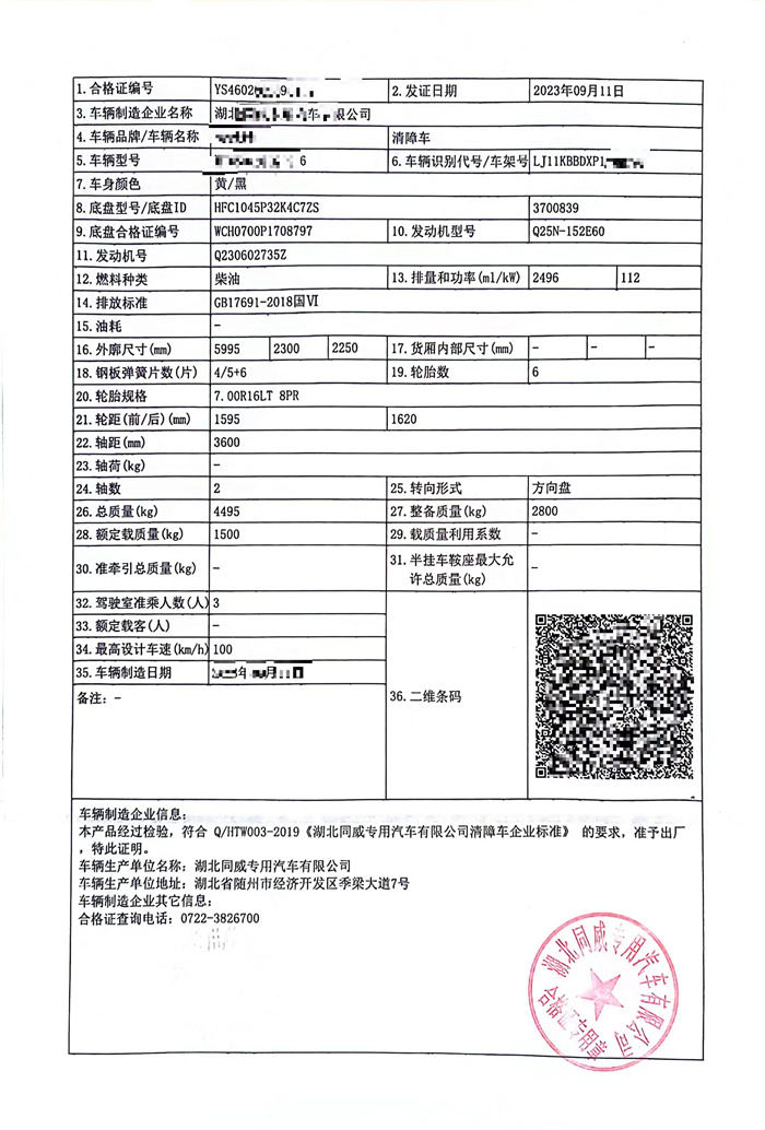 底盘配置:1920mm宽体三人座,3600mm轴距,全柴152马力,星锐6档变速器,180mm局部三层大梁,6.5吨后桥。