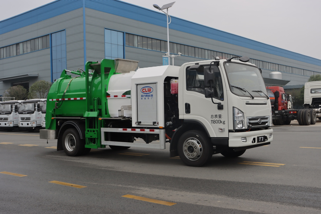 弧形罐体,边四底五/边五底六。2.长源/皖液油泵,长源/中梅多路阀,知名液压油缸。3.全推铲卸料(不带举升功能),具有干湿分离功能。液压后盖,后盖配防腐硅胶密封条。4.后门液压锁紧5.链条式提升机,可挂120/240升标准塑料垃圾桶。进料口盖液压开关。6.驾驶室内电控(提升机外部手动**),后门锁紧与后盖开关的操作具有防误操作。7.箱体带清洗装置(液压马达带动高压泵、带水箱)。