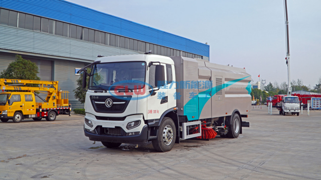 程力汽车股份有限公司环卫车系列东风天锦纯电动洗扫车是我公司自行设计开发、具有自主知识产权、国际**技术水平的新一代路面、路沿清洗、清扫及喷雾降尘的专用设备。该款洗扫车结合了扫路车及高压清洗车的功能特点,并解决了吸尘车无法在城市道路上清洗路沿的短板,在作业时利用扫刷将地面垃圾扫向车内侧,路面的顽固附着物由高压喷水杆喷出的水流冲起,再由吸盘吸入垃圾箱储存.具有绿色环保、功能齐全、设计合理、能耗低、清洗范围广、使用寿命长等特点。